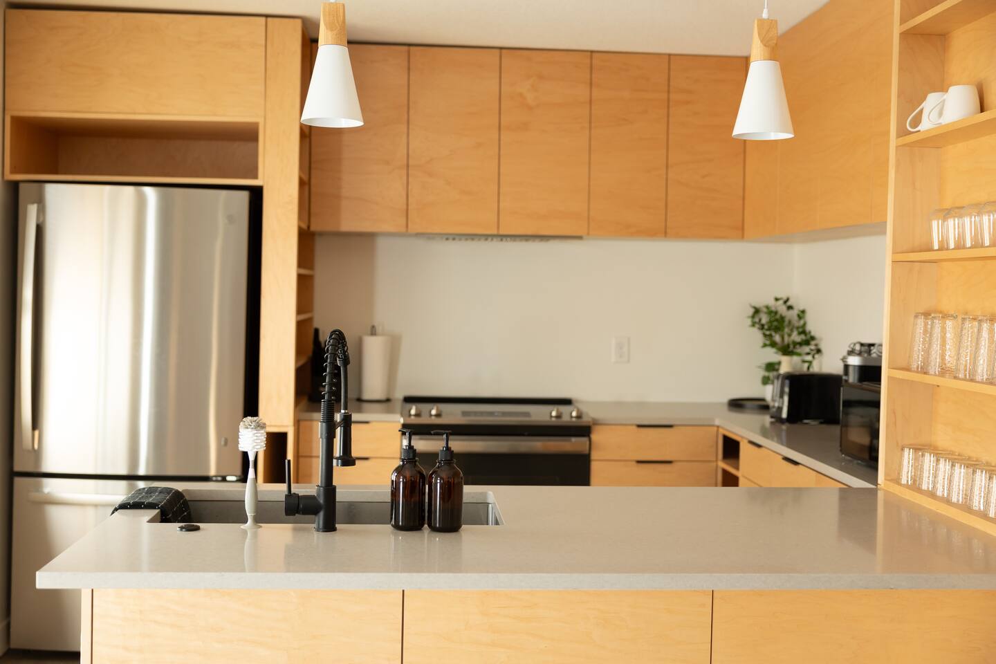 Step into a beautifully remodeled 2-bedroom, 2-bath apartment designed by MOD, known for exceptional craftsmanship and modern style. Every detail is thoughtfully designed for comfort, convenience, and elegance. Key Features: 🛏️ Spacious Layout: 2 bedrooms, 2 bathrooms 🍳 Full Kitchen: Custom MOD cabinets with ample storage ⚡ Modern Appliances: Fridge with ice maker, stove, oven, microwave ✨🪵 Sleek Flooring: Vinyl plank throughout with beautifully tiled bathrooms 🛁💎 and kitchen 🧺 In-Unit Laundry: Stackable washer/dryer 🚗 Free Guest Parking: Parking passes is located in the kitchen counter 🐾🚭Pet-Friendly & Smoke-Free 🏠 Floor Location: 2nd floor Prime Location: Just minutes from downtown, Aggieville, and campus—shops, restaurants, and everything Manhattan has to offer are at your doorstep. Perfect for commuting, dining, or exploring! Your perfect home away from home—whether for business, leisure, or a mix of both!