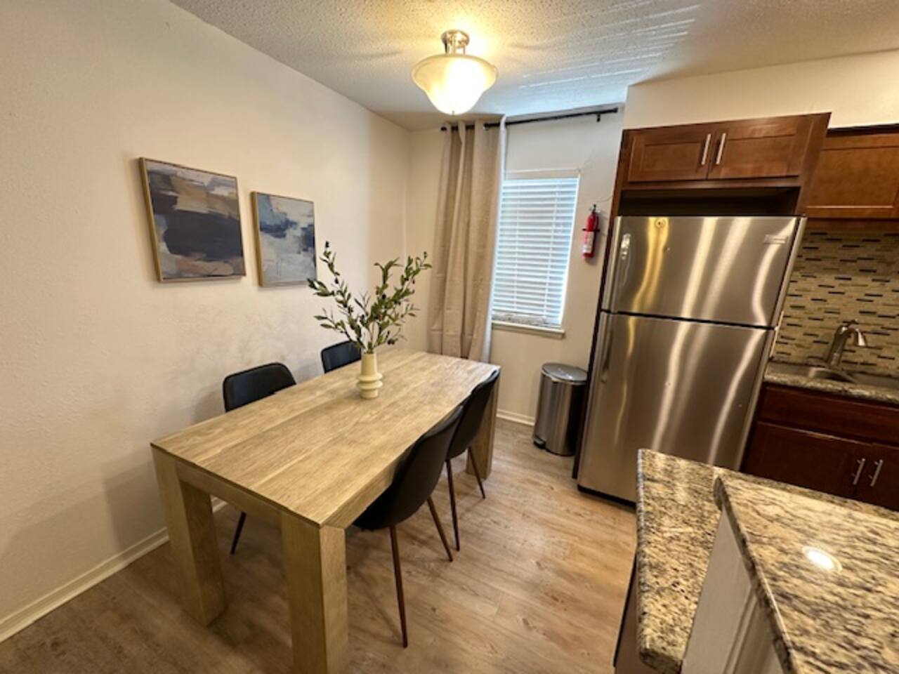 Step into a kitchen designed to inspire, featuring sleek custom MOD cabinetry and modern appliances—including a fridge, oven, and microwave. Cozy banquette seating makes it perfect for intimate dinners or lively chats with friends and family. Key Features: 🛏️ 2 Bedrooms, 1 Bathroom (Queen beds in each) + 🛋️ Sofa Bed in Living Room 🍳 Full Kitchen: Custom cabinets & appliances ✨🪵 Sleek Vinyl Flooring & Tiled Bathrooms 🧺 Laundry: In-building washer/dryer 🚗 Free Guest Parking 🏠 Floor Location: Main Level 🐾 Pet-Friendly Enjoy a clean, smoke-free space with free parking and a pet-friendly environment. Relax, cook, and unwind—your cozy Manhattan retreat awaits!